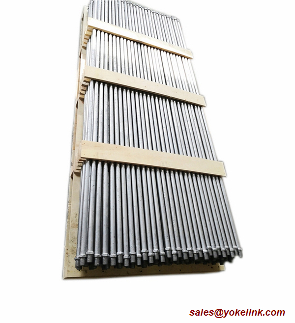 Batang jangkar ekstensi yokelink digunakan bersama dengan jangkar dan kopling atau mur mata yang disadap secara internal . Batang jangkar ditempa dari baja karbon tengah untuk memastikan kekuatan tarik yang tinggi. Ukuran hex satu ujung batang yang berlawanan adalah 1-1/4 ". Ukuran utas di kedua ujungnya tersedia untuk 5/8", 3/4 "dan 1". Panjang kita memiliki 3,5 kaki dan 7 kaki. Hot dip galvanis untuk memenuhi spesifikasi ASTM A153.