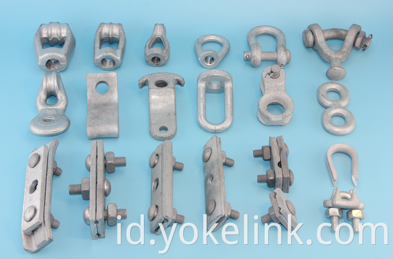 Lapisan baut mata yokelink yang dibuat oleh baja tempa drop, diproduksi dari ANSI/IEEE STD C135.80. Tersedia untuk baut 5/8 "dan 3/4". Hot dip galvanis untuk memenuhi spesifikasi ASTM A153.